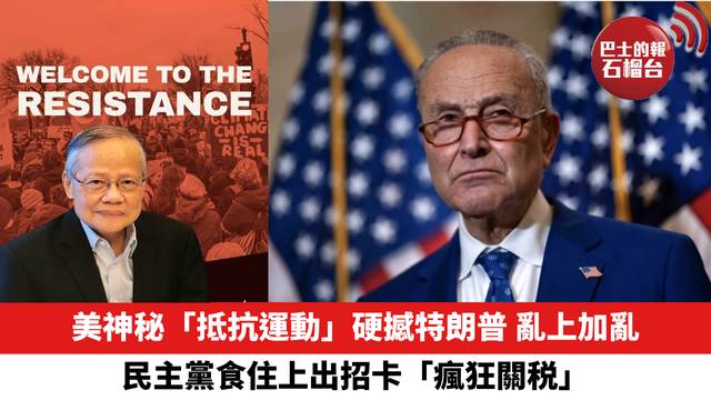 美神秘「抵抗運動」硬撼特朗普,亂上加亂,民主黨食住上出招卡「瘋狂關税」。 (黎廷瑤)